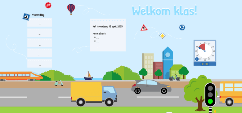 Start de dag met deze welkomstpagina in het thema 'verkeer'!Vul het template in of pas het aan naar wens!