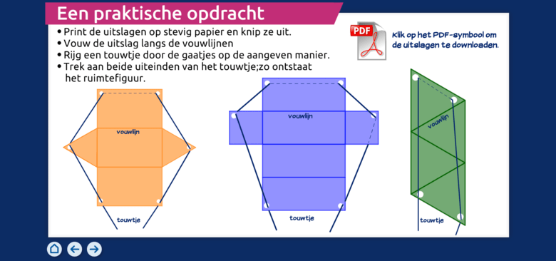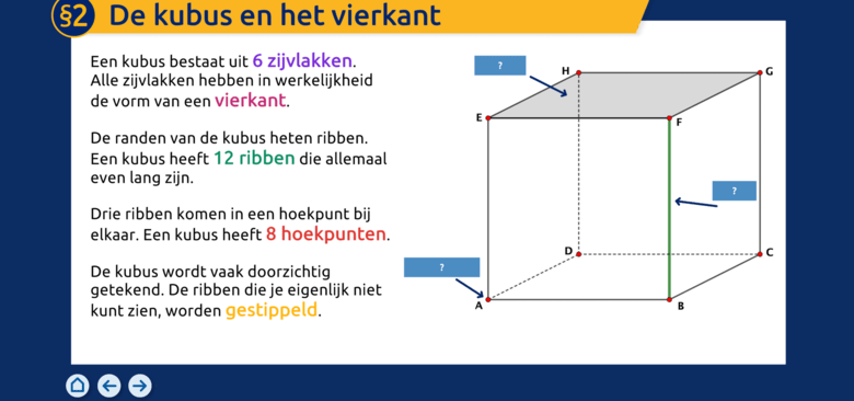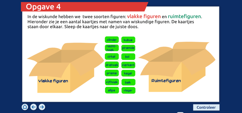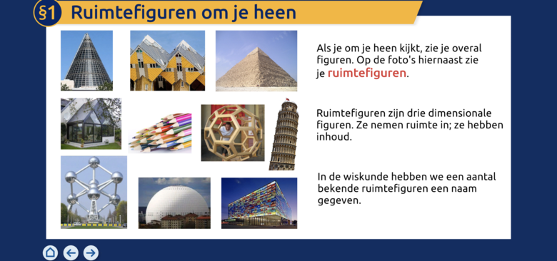 In deze interactieve lessenserie gaat het over ruimtefiguren. Je leert de namen en eigenschappen van de bekendste ruimtefiguren. Je leert een aantal ruimtefiguren te tekenen zoals een kubus, een balk, een prisma en een piramide. Je leert ook van ruimtefiguren uitslagen te maken.